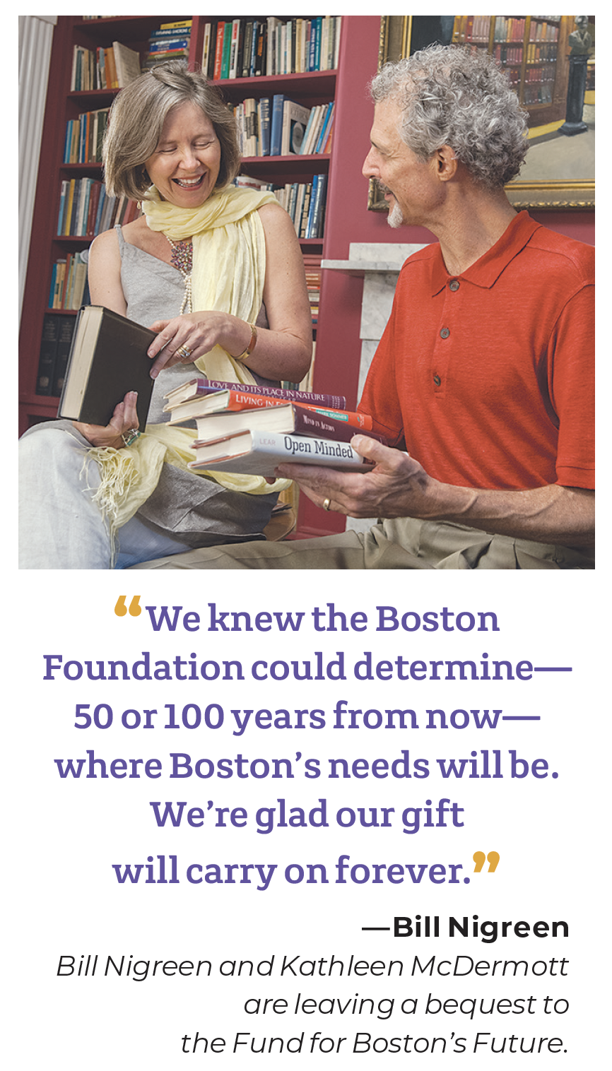 A bequest to the Boston Foundation ensures that the charitable causes that are important to you and your family will continue to be supported beyond your lifetime. Bequests can be made by will or revocable trust.