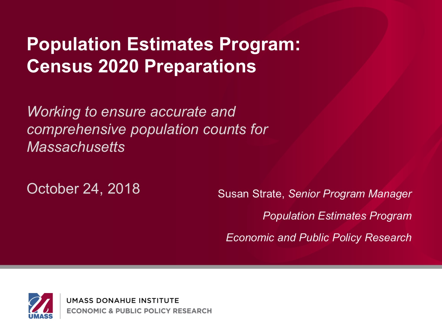 Susan Strate, Senior Program Manager, Population Estimates Program, UMass Donahue Institute; Member, Federal-State Cooperative for Population Estimates (FSCPE) Steering Committee