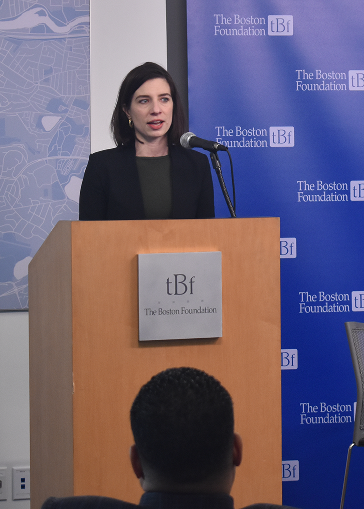 “The Boston Foundation is the most committed funder of workforce development in our area,” said Rubin. “We know—and the Foundation knows—that right now we have an economy that is booming in Boston while, at the same time, inequality is getting worse and worse. This unique atmosphere isn’t fleeting, but it won’t be here forever. This is a time when challenges meet opportunities. It’s time to go big and be bold.” That includes daring to try new things and to expand (and charge for) services, as well as pushing for systemic changes in welfare policies and wage rates that now put eager workers in a Catch-22 where they can’t afford to develop themselves or even take a better job.