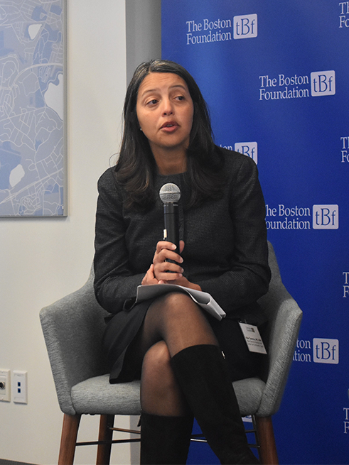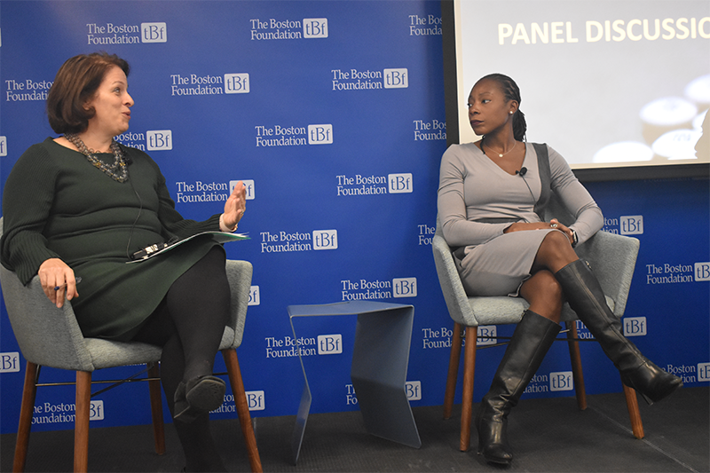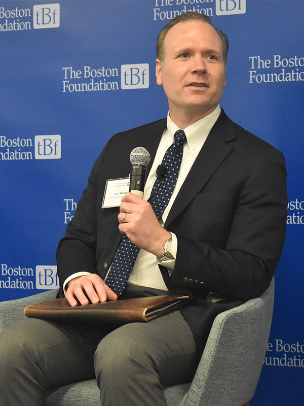 That conversation segued into the second panel, discussing innovative solutions and funding needs. The Foundation’s Director of Health and Wellness Nineequa Blanding posed questions to JJ Bartlett of the Fishing Partnership (an association representing one of the populations hardest-hit by the opioid epidemic); David Barash, Executive Director of the GE Foundation; Brendan Little, Policy Director for the City of Boston’s Office of Recovery Services; and Elsie Taveras, pediatrics professor and Executive Director of the Kraft Center for Community Health at Mass General Hospital. Each of these experts spoke of organizations they support or work with that are pursuing outreach, treatment and support for people suffering or recovering from opioid use disorder—including Boston Health Care for the Homeless, Boston Medical Center, CareZone, the Herren Project, Project Here, RIZE, Shatterproof, SUSTAIN Communities, and more.