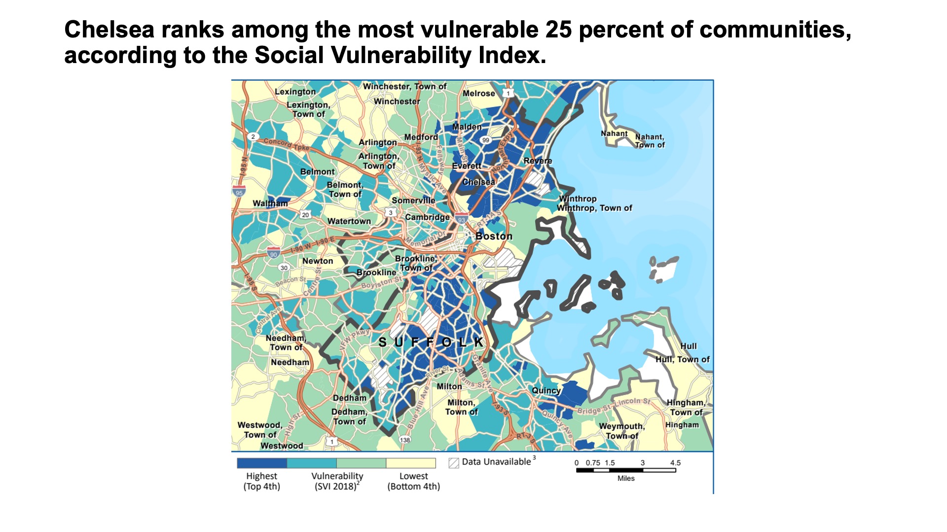 On March 16, the Boston kicked off the exploration of a new community-centered initiative that will support the collective strength of a community as it moves through and beyond the pandemic – Chelsea 2021. The event, Chelsea 2021 and Beyond: Toward a Just and Equitable Recovery, brought together data, ideas and anecdotes in a presentation that was informative and emotional, by turns hopeful and angry.